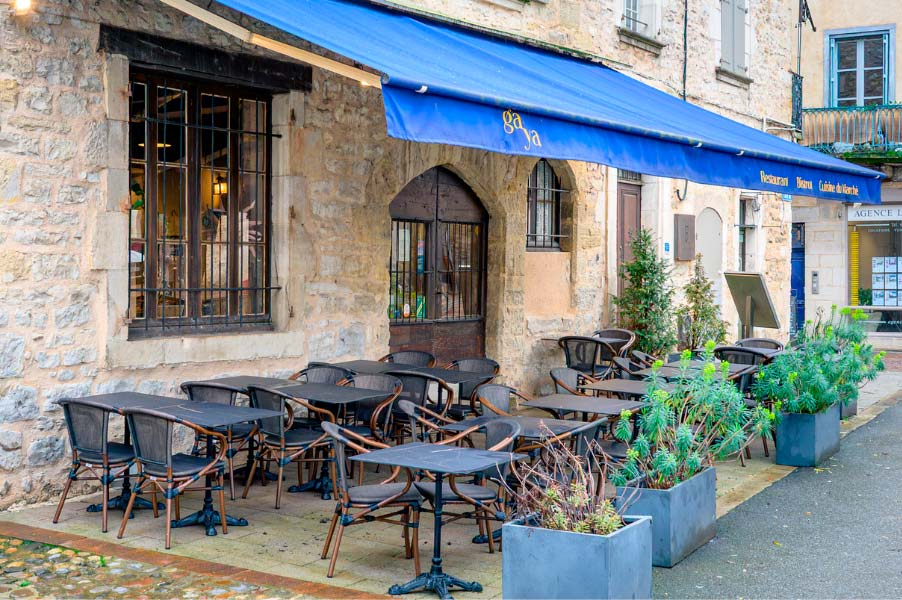 Le Resto Gaya vous accueille rue de l’Hôtel-Dieu, en plein cœur historique de Villefranche-de-Rouergue, à deux pas de la Collégiale Notre-Dame-des-Marais et au centre de l’animation du marché du jeudi. Ici, on découvre la ville autrement. Les ruelles pavées, les façades anciennes et l’atmosphère vivante du quartier plongent visiteurs et habitants dans l’authenticité de la bastide. À l’intérieur, pierre apparente, cheminée ancienne et ambiance chaleureuse créent un cadre intime et sincère. Un lieu où l’on se sent bien, tout simplement, pour savourer un moment hors du temps.